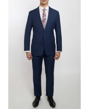 English Laundry Two Button Notch Lapel Slim Fit Men's French Blue Suit With Flat Front Pants